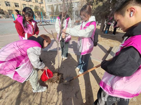 二十余名志愿者在社区进行了植树活动,在活动中,大家积极参与,挖坑,放置树苗,盖土,浇水,志愿者相互配合,顺利完成此项工作任务。