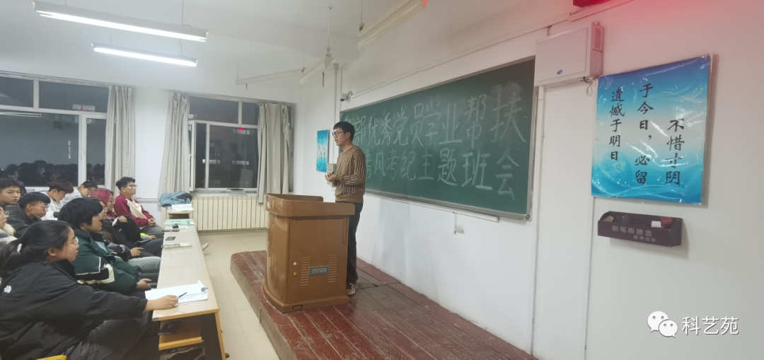 学生第四党支部于12月7日开展“支部优秀党员学业帮扶活动暨考风考纪主题班会”活动,由宋加辉和孙昌浩两位同学担任主讲人。