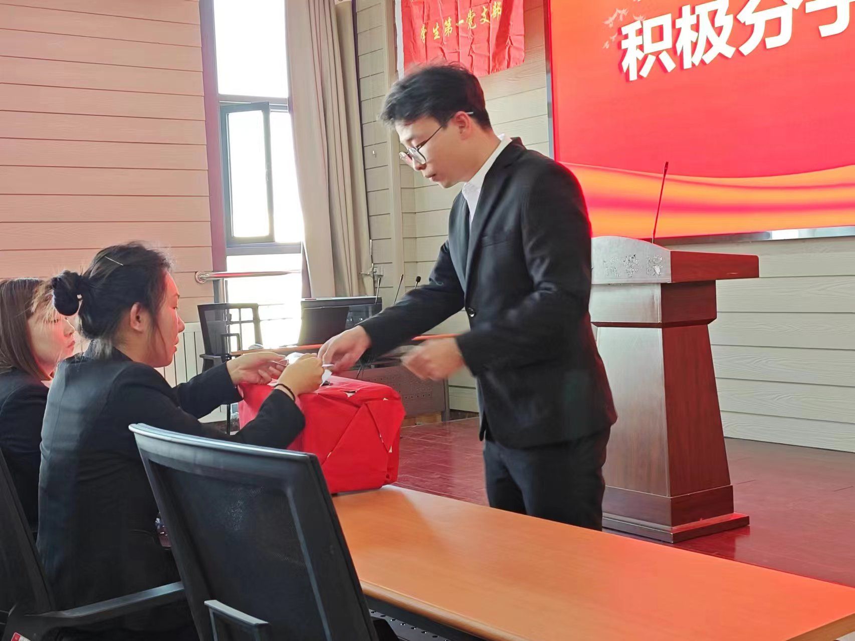 答辩会在庄严的国歌中拉开序幕。首先,付英轩同志为到场的答辩学生和评委们介绍了本次答辩具体环节及要求,通报了学院2024年上半年党员发展情况并强调了公平、公正、公开的原则等评选要求。本次共有15位同学参加答辩。会上,每名发展对象详细汇报自身对党的认识、入党动机、本人履历,表达自己入党的决心。选手们用丰富饱满的热情和真诚的态度表达了自己对党组织的向往,用自信的风采展现了成人直播