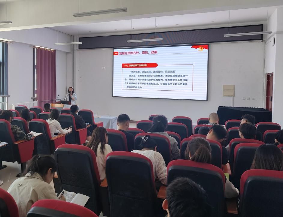 张茜老师首先讲了发展党员的方针、原则、政策和申请入党的基本条件,详细讲解了发展党员方针含义、党员发展的基本原则、党员发展的政策等内容,让大家对发展党员的方针、需要坚持哪些原则等有了深刻的了解,并对发展党员的程序有了进一步的认识。
