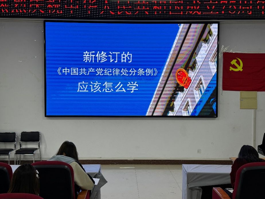 在明德楼b401进行了“新修订的《中国共产党纪律处分条例》应该怎么学”主题党课培训,本次培训的主讲人是张轩老师。
