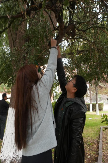 高耀辉老师作户外授课,指导学生们为树木挂牌,切实践行护绿使命。大家纷纷表示,亲手为树木挂牌的过程,不仅加深了对植物知识的了解,更以专业和双手美化了校园,在实践中进一步坚定了知校、爱校、荣校的理想信念。