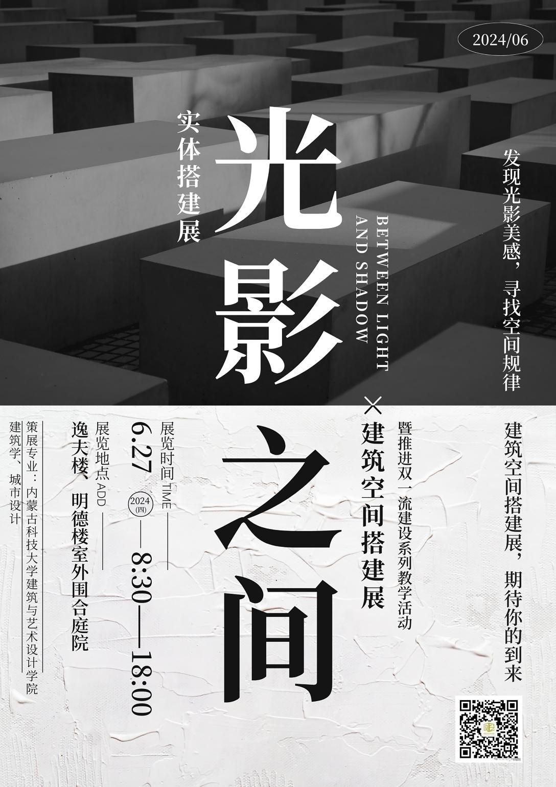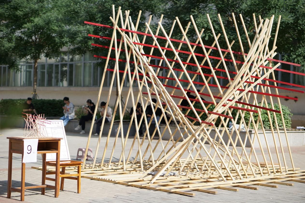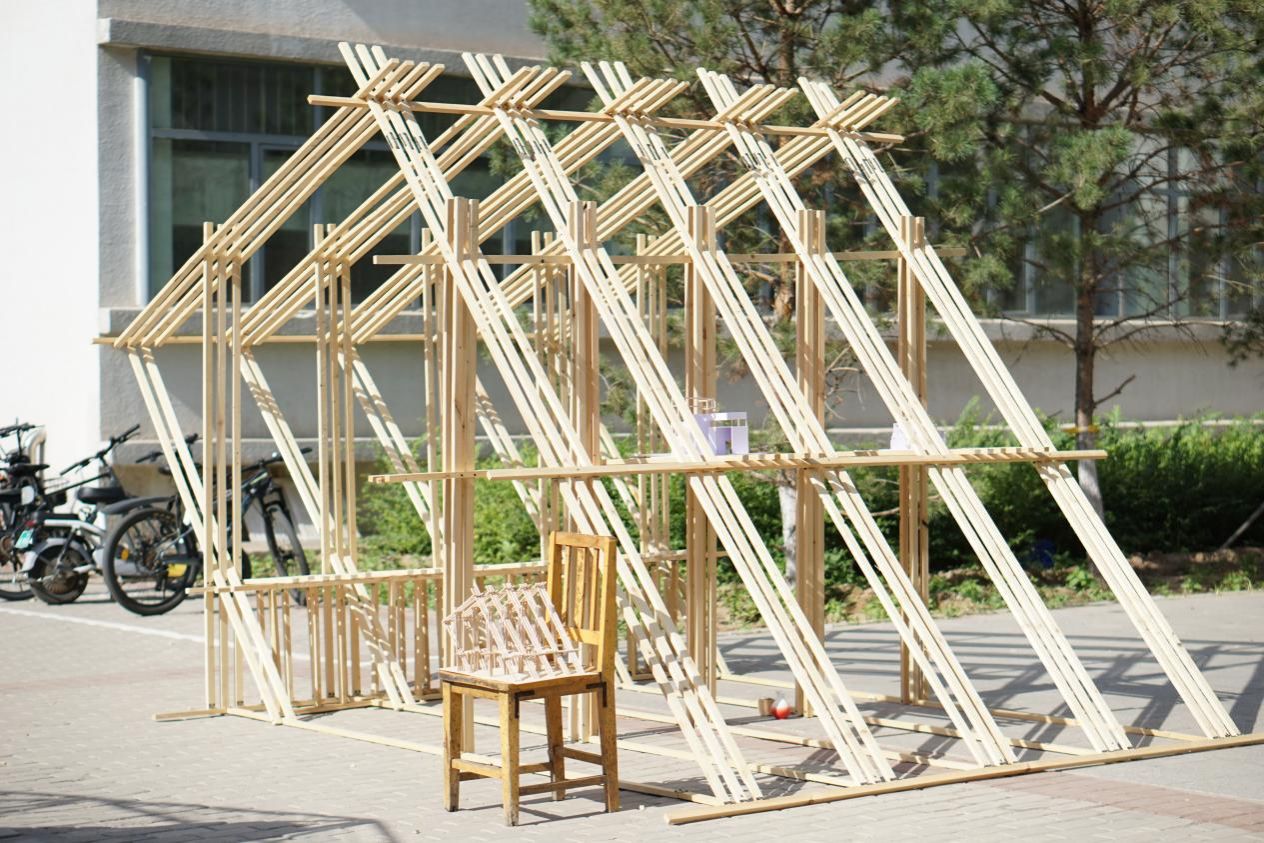建造节暨建筑学、城市设计专业2023级实体搭建成果展于2024年6月27日顺利举行,展览地点设于明德楼与逸夫楼室外围合庭院。