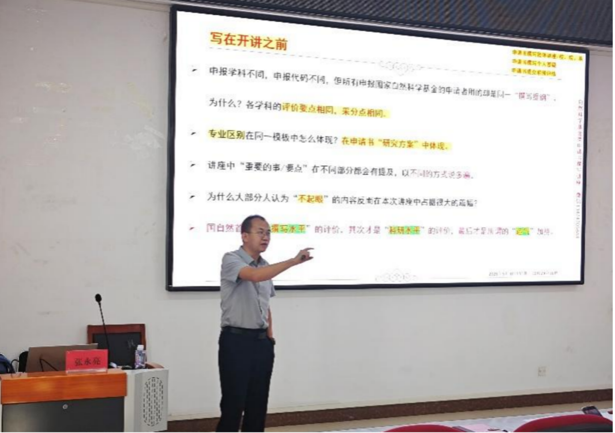 在明德楼B401会议室举办度国家自然科学基金申请指导讲座,开展2026年度国家自然科学基金申动员,并提供项目申请书撰写专项辅导。