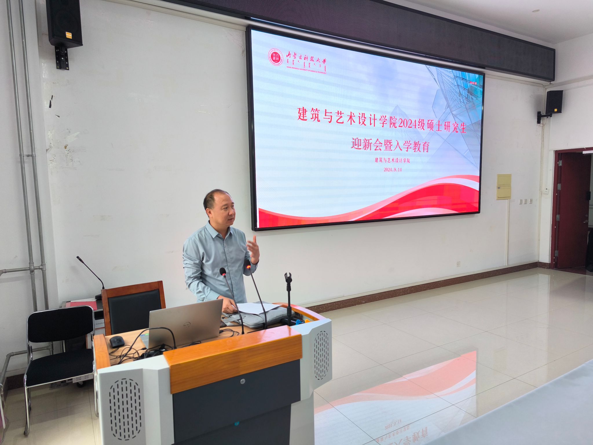 成人直播 2024级硕士研究生迎新会于2024年9月14日在明德楼B401顺利举行,针对成人直播 建筑学一级学科硕士点、设计学一级学科硕士点和设计专业硕士学位点,院长韩冬楠、副院长李志春分别介绍了相关研究生教育基本规章制度、研究生科研方向选择、研究生未来职业规划、导师选择等情况。建筑学学科王伟栋教授、设计学/设计学科边坤教授分别对2024级硕士研究生介绍了建筑学、设计学/设计学科方向及导师基本情况。