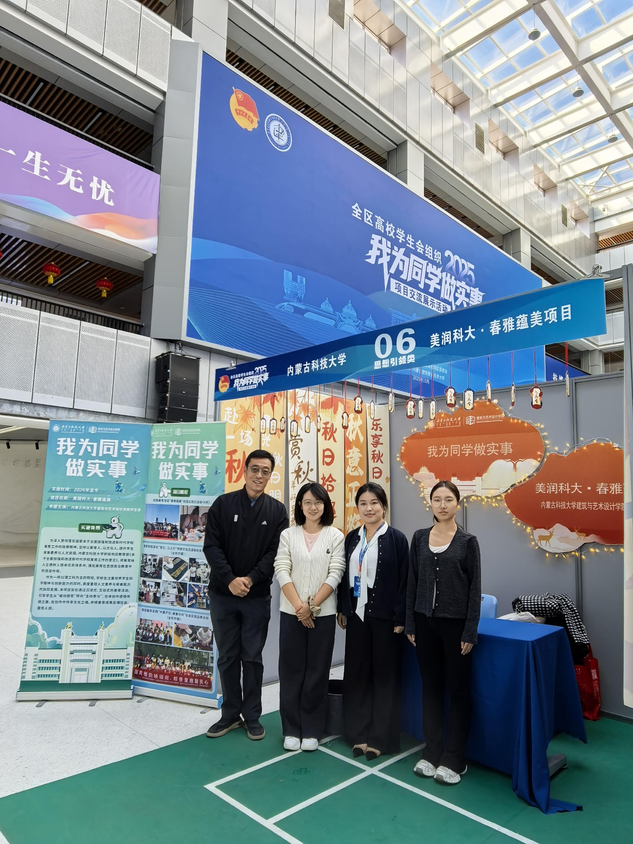 近日,在内蒙古自治区高校学生会组织"我为同学做实事"项目交流展示活动中,院申报的"美润科大·春雅"校园美育实践活动入选自治区“我为同学做实事精品项目,展现了学院在服务同学成长成才方面的创新实践和显著成效。