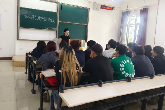 各位辅导员老师在各自包联的班级召开班会,从宿舍安全、交通安全、消防安全、网络安全等方面入手,对同学们进行了详细的安全知识讲解,并明确了相关注意事项和纪律要求。教育引导同学离校前务必做到人走电断,杜绝宿舍安全隐患;严格遵守学院请销假制度,非必要不请假,确需离校须如实填报去向信息。引导同学遵纪守法,遵守社会道德规范,外出时应做好自身防范措施,确保出行安全。