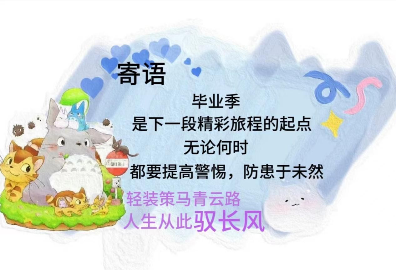 烈日灼灼,夏意匆匆,光阴荏苒,岁月流转,毕业季即将来临。“人生如书,毕业不是结束,而是新篇章的开始。愿你们平平安安、怀揣梦想、勇敢前行,书写属于自己的精彩故事。”