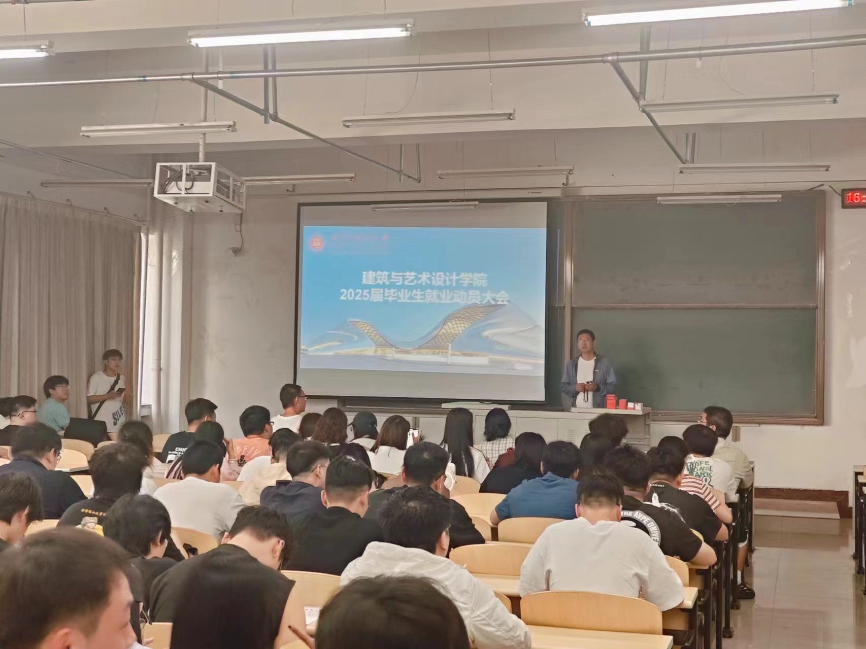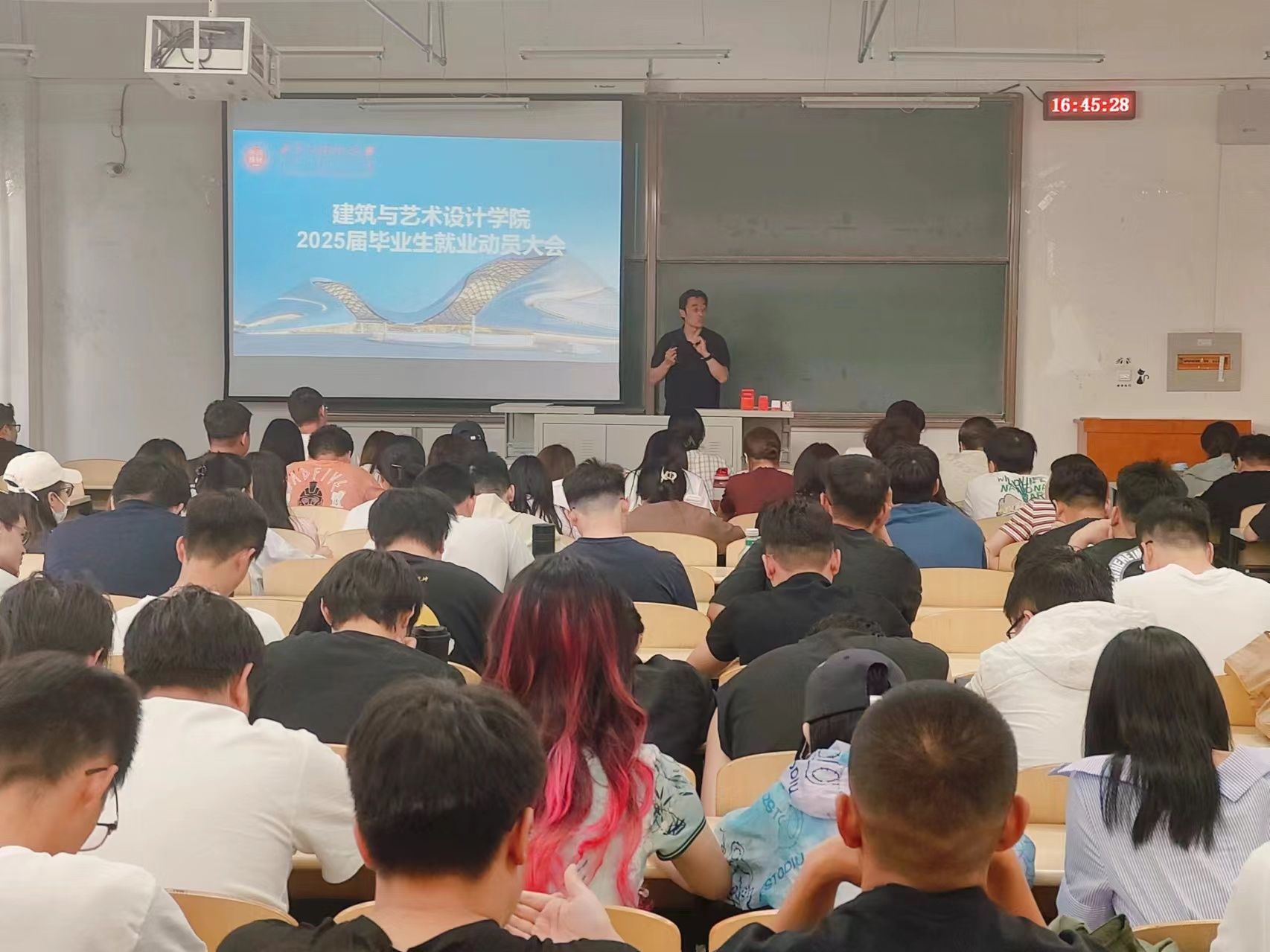 于2024年6月7日在逸夫楼召开2025届毕业生就业动员大会,学院党委副书记、副院长吴宇,辅导员朱国富,2025届毕业班班主任老师,2025届全体毕业生参会。