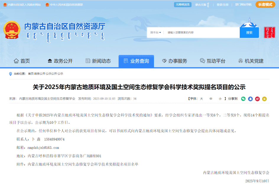 内蒙古自治区自然资源厅公布了2025年内蒙古地质环境及国土空间生态修复学会科学技术奖的评选结果。成人直播