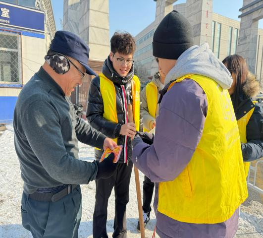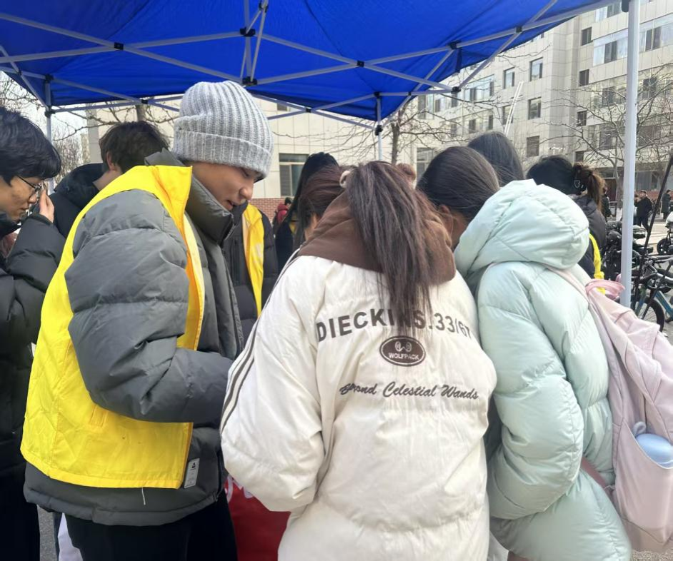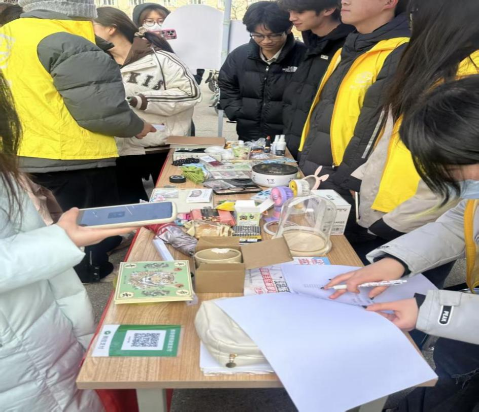 的志愿者们全程热情投入:他们细致地整理义卖品、耐心地为师生介绍物品细节、认真地记录每一笔爱心款项……冻红的脸颊与温暖的笑容形成鲜明对比,成为冬日校园里一道动人的风景线。