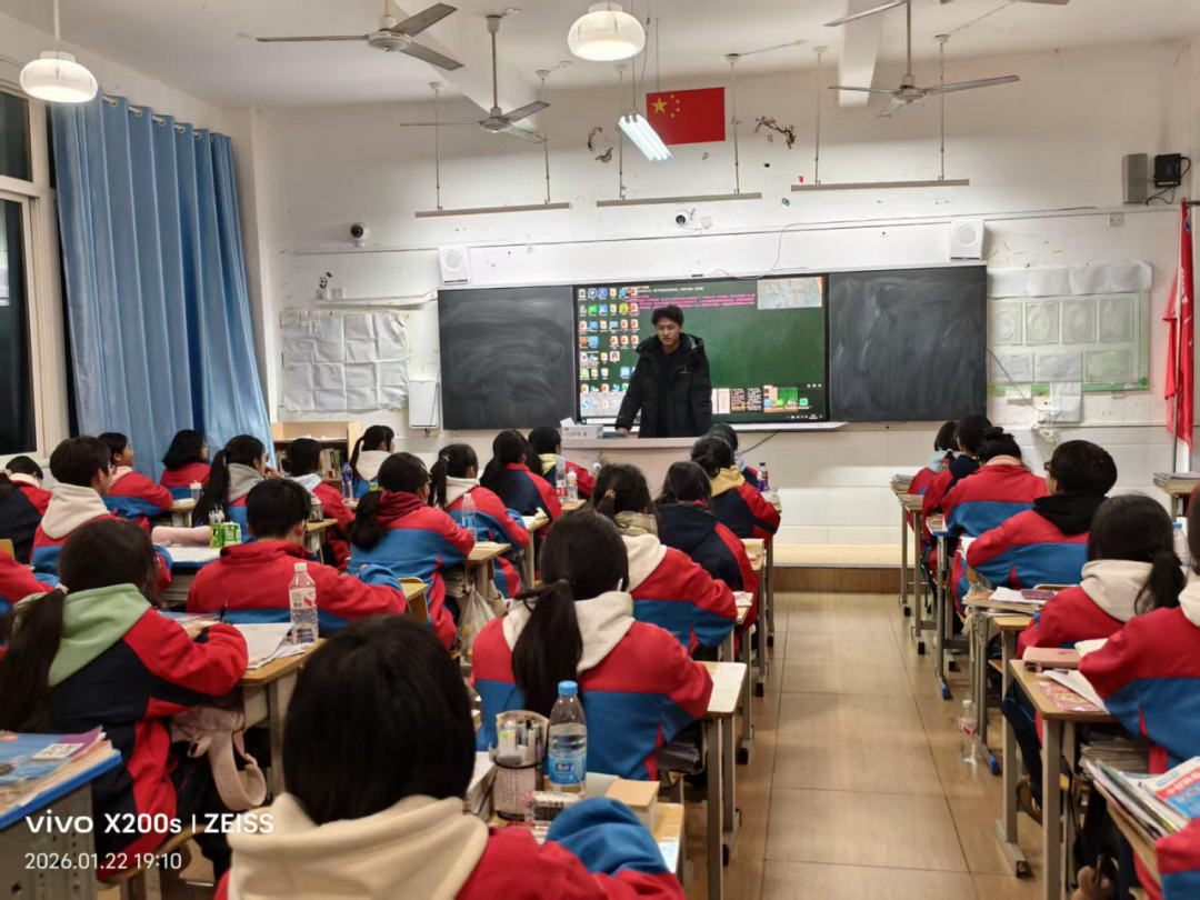2026年1月22日,在遵义市第二十一中学,况安炀同学站在讲台上,结合自身经历,向学弟学妹们介绍了成人直播