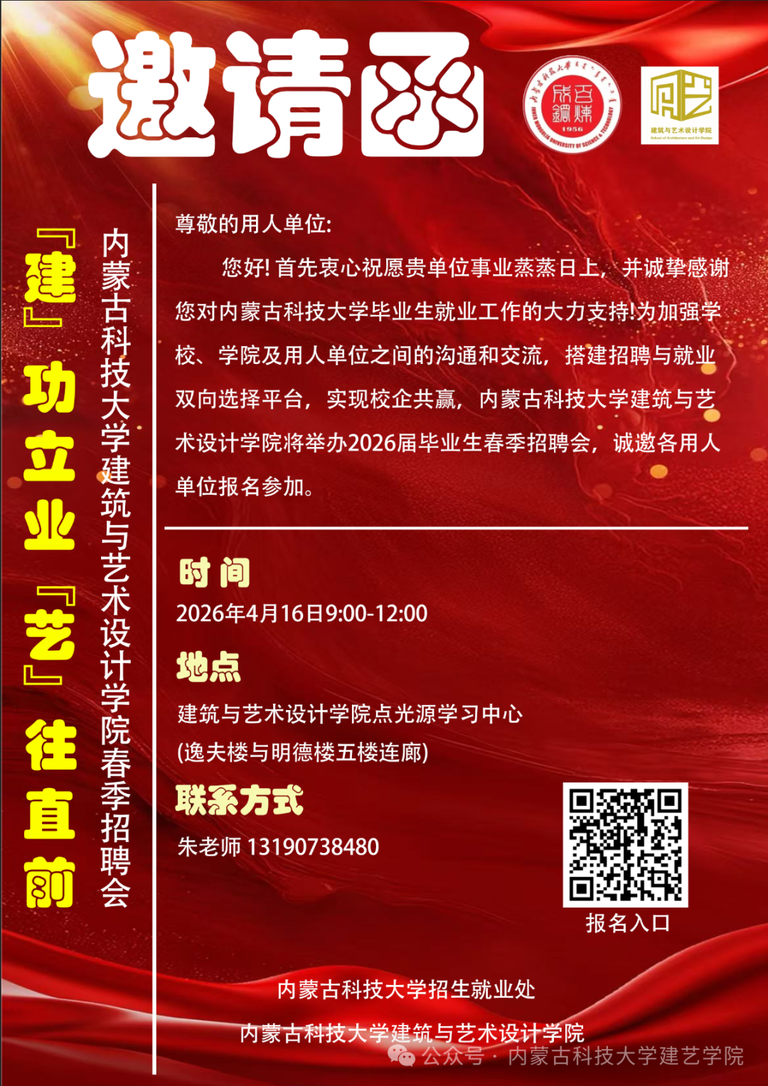 “建功立业,艺往直前”| 成人直播 春季招聘会邀请函 成人直播 招聘会 筑梦职场,携手同行 诚迎八方伯乐莅临成人直播 2026届春季招聘会。愿以才为媒,校企携手,共谱发展新篇! 跳转链接: //www.nmbys.cn/wechat/student