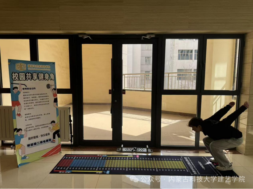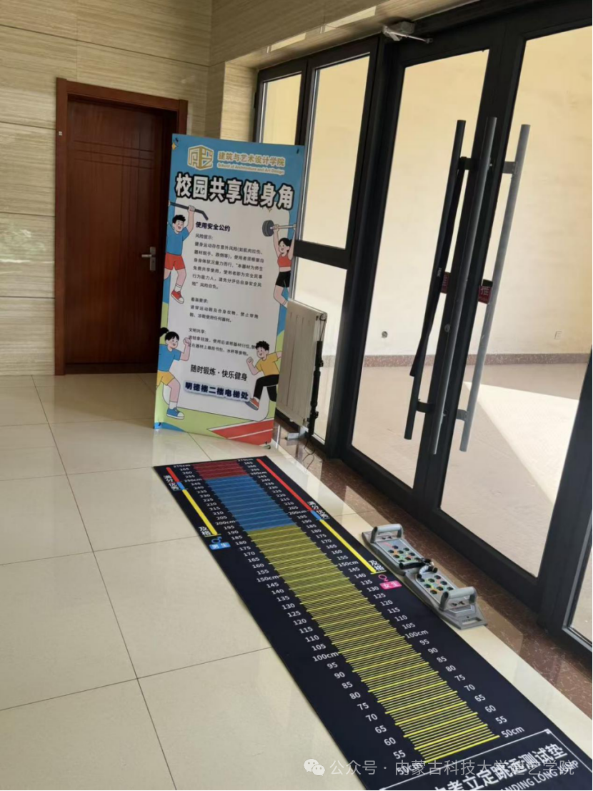 在明德楼二楼电梯旁“见缝插针”,正式启用“校园共享健身角”。立定跳远测试垫等实用器材率先“上岗”,让师生出了电梯就能“跳个远”,把碎片化空间变成了随到随练的“元气补给站”。