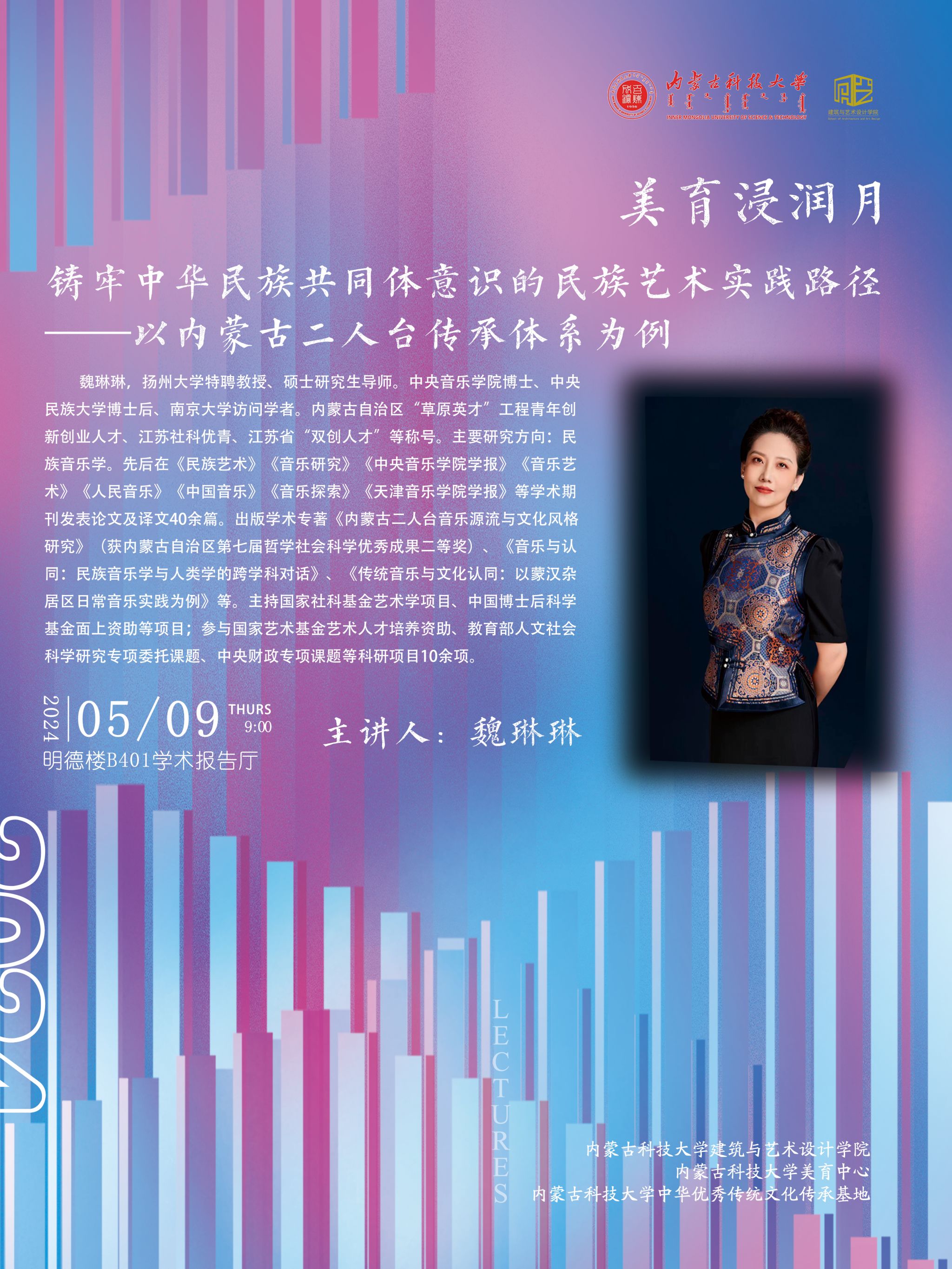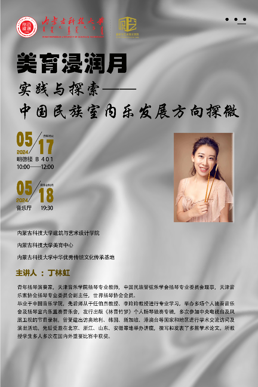 音乐系师生二胡、萨克斯、竹笛、扬琴等音乐会及赴包头医学院、包头博物馆和包头钢铁集团等地开展美育浸润演出等活动。